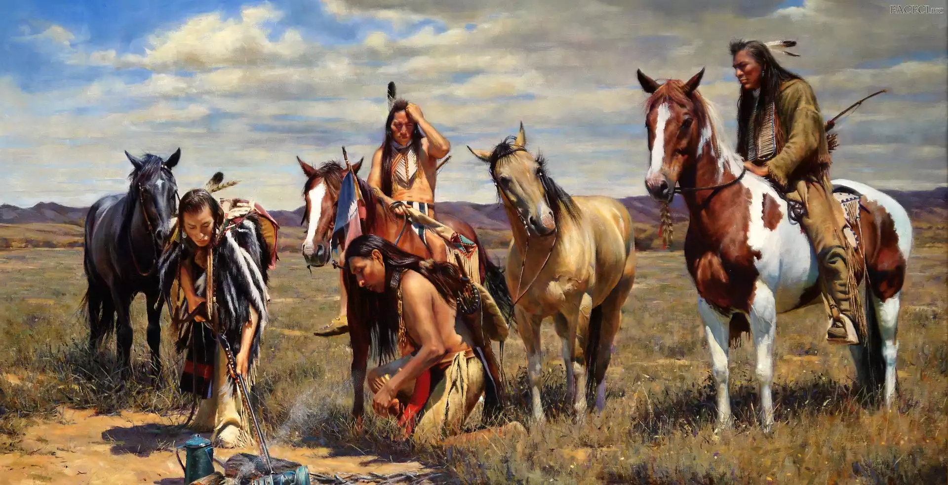 Indianie, Konie, Łąka - faceci.biz